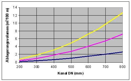 | Ablagerungsvolumen auf 100 m | m3/100 m | 0,65 | 1,79 | 3,17 |