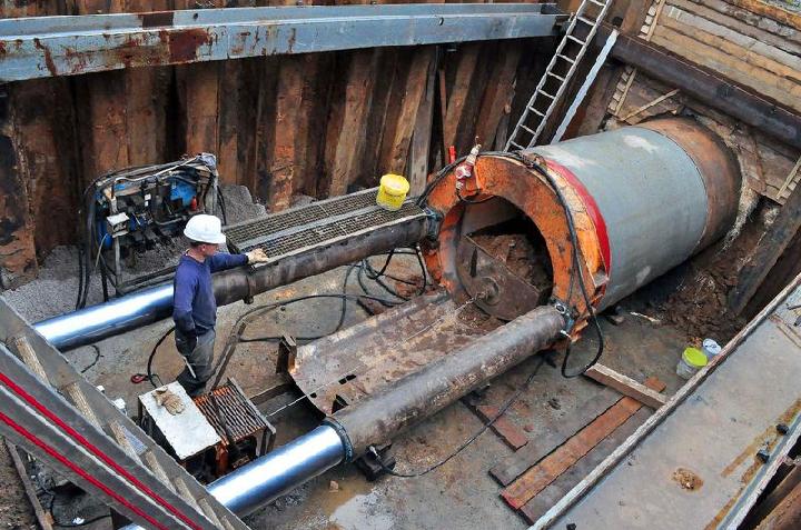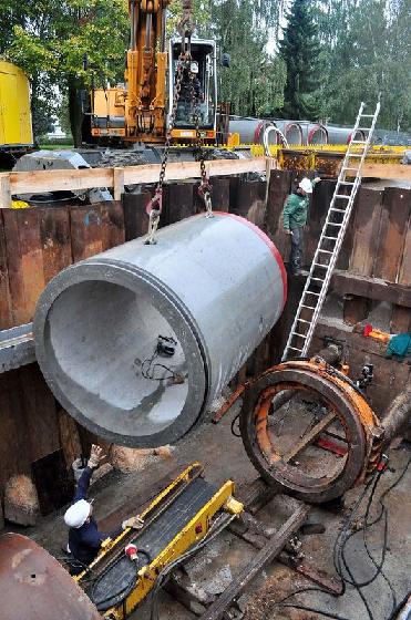 Sieben-Tonnen-Rohre im Schildvortrieb unter Bahntrasse hindurch gepresst