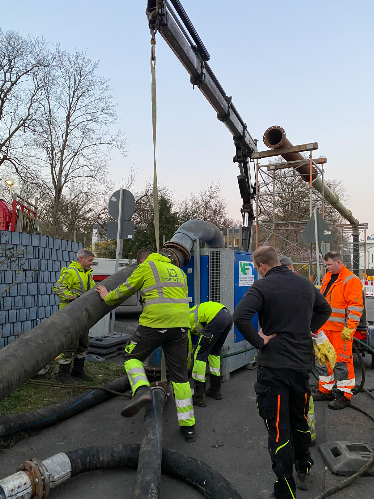 Für die Abwasserumleitung wurde die De Vet Wasserbau GmbH von der Umwelttechnik Franz Janßen GmbH beauftragt. Mit der Über-