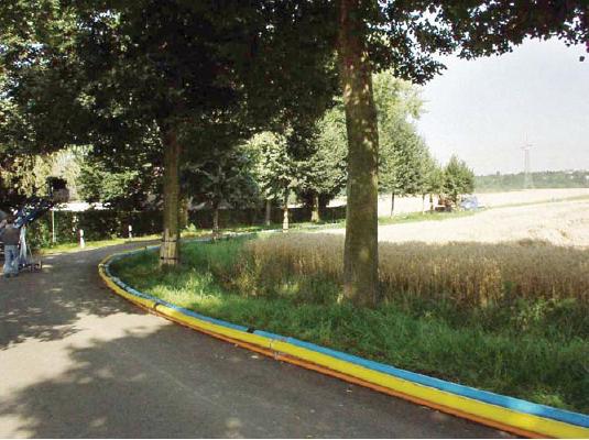 Jüngstes Referenzprojekt der "Parallelen No-Dig-Technik" ist eine 250 Meter lange Verlegung der Sparten Gas, Wasser, Telekommunikation und Kabel TV entlang einer viel befahrenen Bundesstrasse. Besondere Schwierigkeiten dabei waren die Dükerung eines Bachlaufs sowie zwei kreuzende Gas-Hochdruckleitungen mit Durchmessern von DN 1000 und DN 300. Die gesamte Verlegemaßnahme konnte dabei in nur vier Arbeitstagen komplett realisiert werden (Abb. 5).