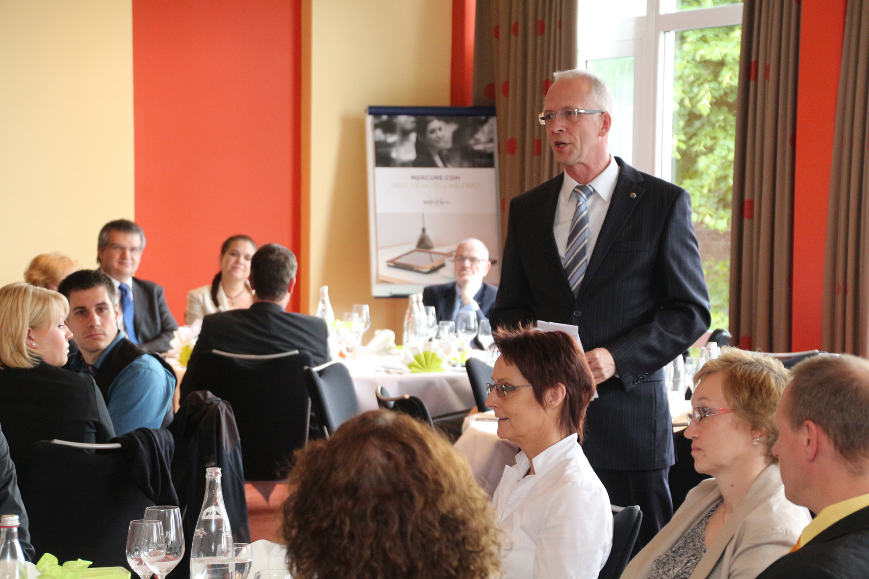 Dass die beruflichen Aussichten der frischgebackenen Netzmeister ausgezeichnet seien, unterstrich auch rbv-Geschäftsführer Dieter Hesselmann, der die Veranstaltung moderierte: "Dass wir hier heute so viele Leute sind, zeigt schon, dass der Abschluss Netzmeister begehrt und notwendig ist." In seiner kurzen Ansprache beglückwünschte Hesselmann die Lehrgangsteilnehmer zu ihrer Entscheidung – die rund acht Monate, die zur Prüfungsvorbereitung erforderlich seien, seien eine anstrengende und entbehrungsreiche Zeit, und das berufsbegleitende Engagement der Teilnehmer verdiene Anerkennung. Seine Hochachtung sprach Hesselmann auch den insgesamt 32 Mitgliedern des Lehrkörpers und des Prüfungsausschusses aus.