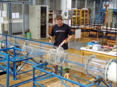 Anschließend wurden die Rechenergebnisse in einem großen Labormodell unter verschiedenen definierten Bedingungen erfolgreich simuliert und die optimierte Schlitzform für den Abschlag verifiziert.