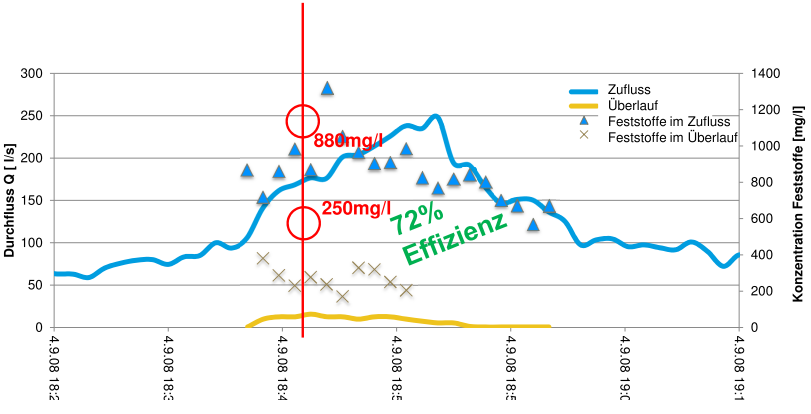 Die gewonnene Daten sowie die Messergebnisse wurden in eine Auslegungsmatrix übertragen und so der Grundstein für ein neues HOBAS Produkt gelegt, den HOBAS CSO Chamber. An mehreren CSO Chamber Systemen wurde durch Frachtmessungen die Leistungsfähigkeit im laufenden Betreib nachgewiesen.