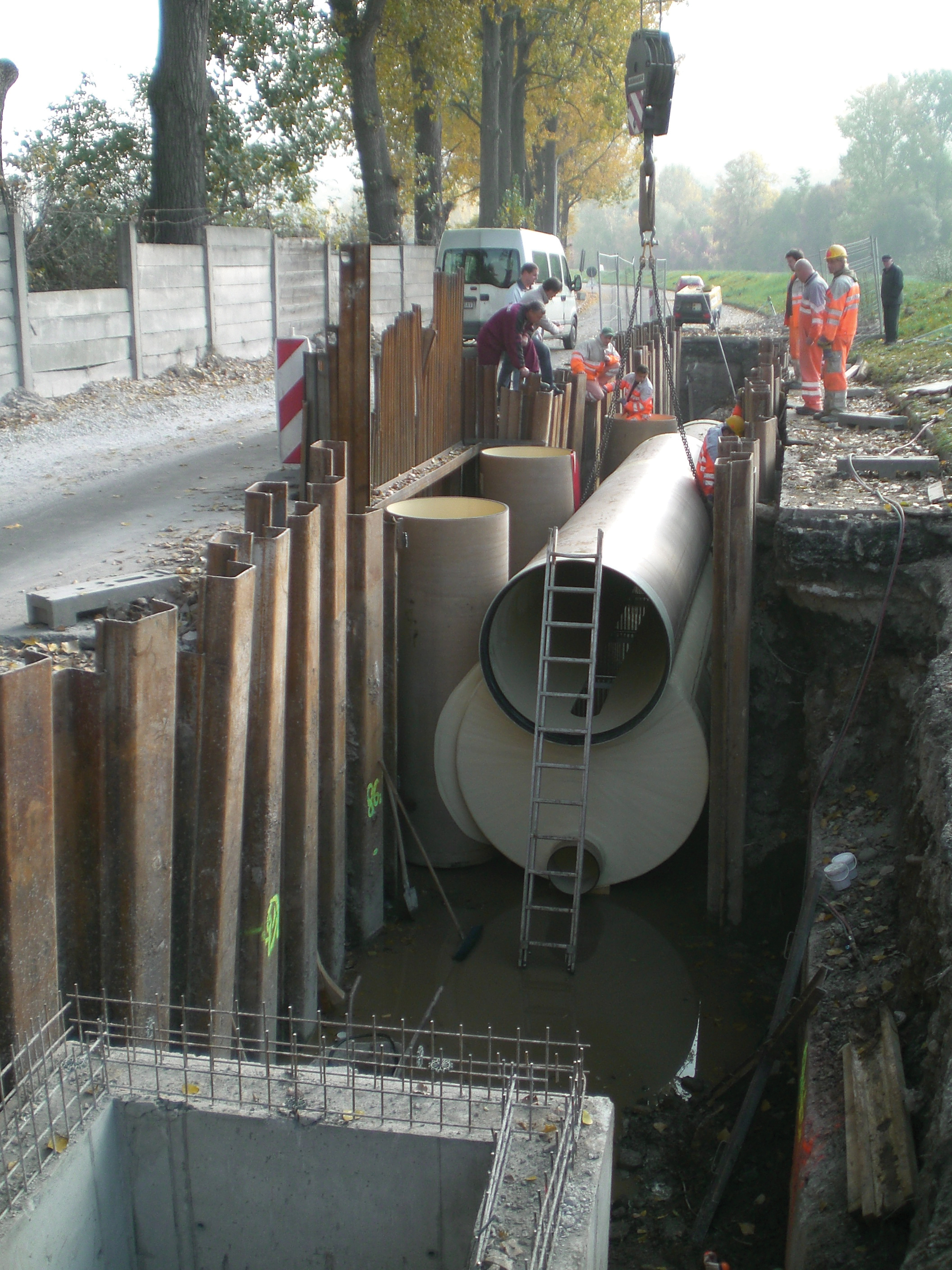 Aufgabenstellung war, Formteile aus HOBAS GFK Großrohren als neuartiges Bauwerk einzusetzen mit dem Anspruch, etwas grundsätzlich Neues und hydraulisch Überzeugendes zu entwickeln. In Zusammenarbeit mit der Technischen Universität Prag wurde daraufhin mittels numerischer Strömungsoptimierung ein hydraulisches Modell entwickelt, welches das Absetzverhalten in einem Trennbauwerk für Mischwasserkanäle optimiert.