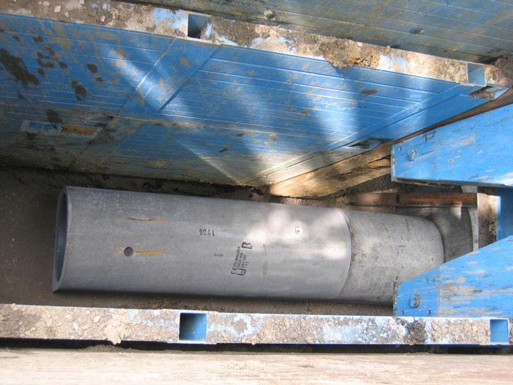 Hier war ein vorhandener Kanal auf einer Länge von rund 65 m durch "Optimierte Rohre" der Nennweite DN 700 zu erneuern. Die Baustelle zeichnete sich durch eine äußerst beengte innerstädtische Lage sowie eine relativ große Verlegetiefe des Kanals vo im Mittel etwa 6,0 m aus. Auch unter diesen schwierigen Randbedingungen konnte die Verlegung der "Optimierten Rohre" mit dem neuen Verlegeverfahren erfolgreich abgeschlossen werden.