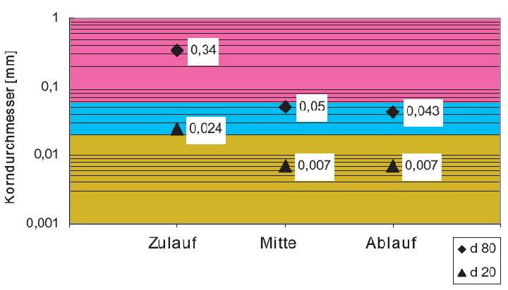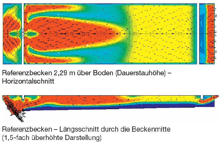 In Messungen wurde nachgewiesen, dass bei starker hydraulischer Belastung aus Abscheideanlagen nach den "Richtlinien für bautechnische Maßnahmen an Straßen in Wassergewinnungsgebieten" (RiStWag) zuvor sedimentierte Stoffe schlagartig ausgetragen werden können. Durch die bislang übliche Zulaufkonstruktion werden die Zuflüsse oberhalb des Dauerwasserspiegels in das Becken geleitet, was zu vertikalen Strömungen Richtung Beckensohle mit der Gefahr der Remobilisierung dort abgelagerter Sedimente führt. Das Sedimentdepot beträgt nach einer Erhebungsuntersuchung von etlichen Beckenanlagen im Mittel rund 14 m³/ha abflusswirksame Fläche. Mit Hilfe von dreidimensionalen Simulationsrechnungen der Strömungs- und Sedimentationsprozesse wurde eine optimierte Zulaufkonstruktion erarbeitet.
