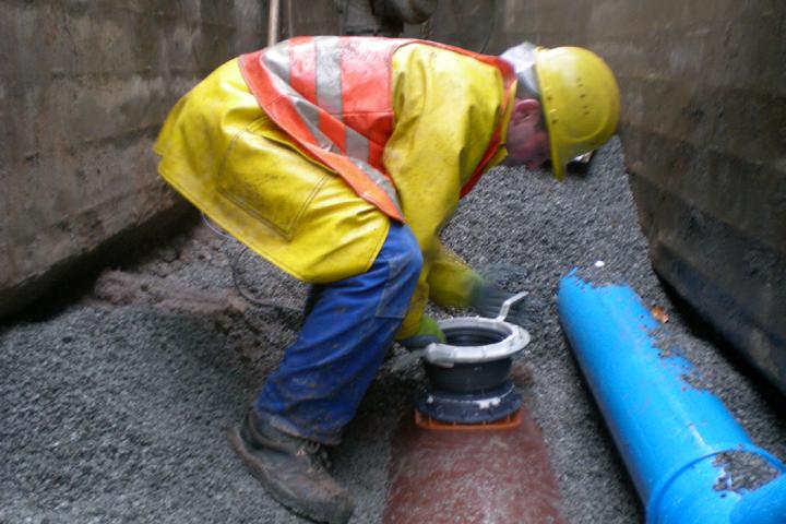 Vor Ort hat sich diese Entscheidung bislang als gute Wahl erwiesen, wie auch Bauleiter Dipl.-Ing. (FH) Markus Schneider vom ausführenden Unternehmen Tiefbau Kehn bestätigen kann. "Allein schon die fest eingelegte FE®-Dichtung ist eine gute Lösung. Sie verhindert ein Herausdrücken und Verschieben der Dichtung bei der Montage. Die Komponenten sind leistungsstark, und durch das geringe Eigengewicht der Rohre sind sie leicht zu handhaben." Das leichte Handling auf der Baustelle liegt auch an der Flexibilität der Formteile. So verfügen sowohl die HS®-Variomuffe, die in Geiselwind in Verbindung mit dem Abzweig eingesetzt wird, als auch der CONNEX-Anschluss, mit dessen Hilfe die Hausanschlüsse in den Sammler DN/OD 630 eingebunden werden, über eine integrierte Kugel, die die Verbindungen in einem Bereich von 0° bis 11° schwenkbar macht. "Auf diese Weise ist ein spannungsfreies Verlegen gewährleistet. Die einwandfreie Funktionsfähigkeit und die Lebensdauer der Rohrleitungen profitieren davon", erklärt Planer Dipl.-Ing. (FH) Stephan Finster.