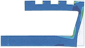 Zwischen Schachtanschluss und Betonschacht entstand im Scheitel ein Spalt von bis zu 20 mm. An der Sohle hingegen lag der Schachtanschluss eng am Beton des Schachtes an. Diese festgestellten Verformungen des Schachtanschlusses deuten darauf hin, dass die Abwinklung der Rohre durch entsprechende Verformungen in dem PE-Formteil des Schachtanschlusses aufgenommen wurde. Zu dem selben Ergebnis kommt eine FEM-Analyse, die im Auftrag der Firma PLASSON durchgeführt worden ist.