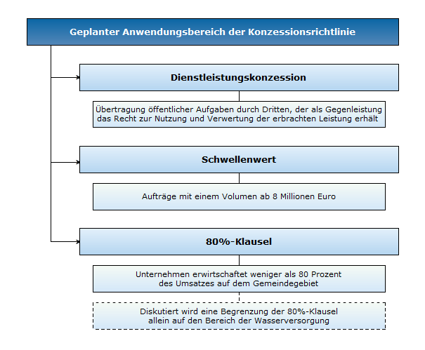 Erst wenn eine Gemeinde die Wasserversorgung an ein privaten Unternehmens vergibt, sollen die Vergabevorschriften der Richtlinie einzuhalten sein. Die Regelungen sollen also tatsächlich erst dann wirken, wenn der Auftrag in die Privatwirtschaft abgegeben wird. Damit soll gewährleistet werden, dass die Vergabe der Aufträge transparent und unter Beachtung der europäischen Wettbewerbsregeln erfolgt.