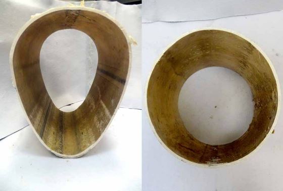 Für die Untersuchungen wurden die beiden Linerstücke zunächst ausführlich fotodokumentiert, gereinigt und visuell begutachtet. Dabei zeigte sich bereits, dass beide Liner keinen signifikanten Abrieb aufwiesen. „Beim Säubern der Innenfläche ist uns aufgefallen, dass die fertigungsbedingt im PE-Coating existierenden oberflächlichen Poren immer noch erkennbar sind und nicht während des Betriebes verschlissen wurden. Damit ist im Prinzip noch der Original-Einbauzustand vorhanden“, so Goldenstein. Eine genauere mikroskopische Betrachtung zeigte auch keine Verfärbungen, Eintrübungen oder Rissbildung, die auf eine chemische Veränderung des homogen aufgebauten Coatings hinweisen würden. Dessen gemessene Dicken betrugen bei beiden Linern zwischen 0,2 und 0,4 Millimetern, wobei das Coating in allen untersuchten Bereichen vollständig am Schlauchliner anlag. Ebenfalls mikroskopisch betrachtet wurden Wandaufbau sowie Wanddicken der Linerproben. Auch hier zeigten sich in den untersuchten Bereichen jeweils ein gleichmäßiger, homogener Wandaufbau mit einer durchschnittlichen Wanddicke von 8,76 Millimeter (Kreisprofil) bzw. 9,1 Millimeter (Eiprofil).