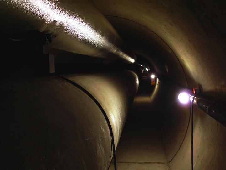 Unterirdische Infrastruktur liegt häufig unter dem Grundwasserhorizont; daraus können sich spezielle Anforderungen an die Abdichtung von unterirdischen Bauten und gegebenenfalls ein dringender Sanierungsbedarf ergeben. Ein Beispiel ist jenes Tunnelsystem, das tief unter den Straßenzügen Frankfurts das Fernwärmenetz des Bankenviertels aufnimmt. Bis zu fünf Meter Wassersäule lasten auf den Betonrohren und Bauwerken: fast zwangsläufig führt jede Undichtigkeit der Bauwerke zum Grundwassereintritt. Das ist der Hintergrund eines anspruchsvollen Sanierungsprojektes, das die SMG Bautenschutztechnik für Hoch- und Tiefbau GmbH, Lage, im Mai 2009 realisierte: In sieben Nachteinsätzen wurde ein Fernwärmebauwerk, unter einer stark befahrenen Straße gelegen, nachhaltig gegen Grundwassereintritt im Übergangsbereich zum Tunnelbauwerk abgedichtet.