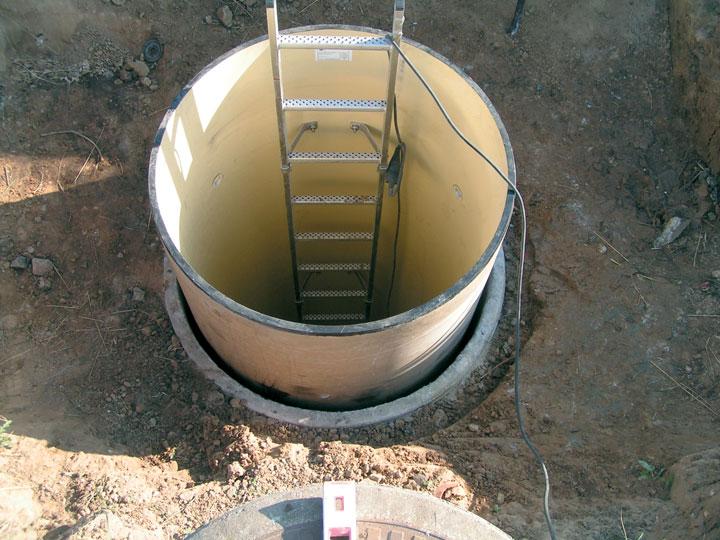 Schachtsanierung mit Hilfe von verdübelten GfK-Platten Die Sanierung bestehender Schächte mit Hilfe verdübelter GfK-Platten ist ebenfalls eine übliche Sanierungsvariante, bei Vorliegen einer ausreichenden Standsicherheit des vorhandenen Schachtes. Auch hier handelt es sich um eine Thematik, die in den Normen nicht klar geregelt ist. Die wesentlichen Problemstellungen werden im Folgenden aufgezeigt: Die Sanierung mit derartigen Verfahren kommt nur dann in Frage, wenn der bestehende Schacht noch eine ausreichende Standsicherheit aufweist, da die Auskleidung nicht dazu geeignet ist Erd- und Verkehrslasten anzutragen. Die Materialkennwerte müssen durch Eigen- und Fremdüberwachung bestätigt sein (z. B. Vorlage einer DIBT-Zulassung oder entsprechender Materialprüfungszeugnisse). Für die eingesetzten Dübel muss eine DIBT-Zulassung vorliegen. Dabei ist insbesondere darauf zu achten, dass die Dübel für das vorhandene Schachtmaterial, in der Regel handelt es sich dabei um Mauerwerk oder Beton, zugelassen sind und die zulässigen Dübelabstände eingehalten werden. Die Platten müssen durch Überlaminate wasserdicht und u. U. auch kraftschlüssig miteinander verbunden werden. Bild 6 zeigt eine ausgeführte Sanierung.