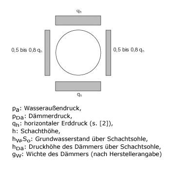 Dä im Bauzustand. Letzteres beinhaltet auch den Auftriebsicherheitsnachweis unter Dämmerdruck. Bei sehr stark geschädigten Schächten ist zusätzlich der Nachweis gegen die Einwirkung des horizontalen Erddruckes q