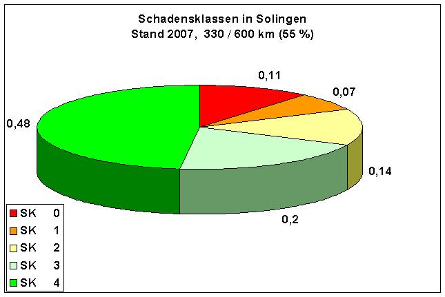 Die Stadt Solingen hat ein Entwässerungsnetz von ca. 600 km Länge. 97 % der öffentlichen Kanalisation wird im Mischwasserverfahren betrieben, zu über 70 % besteht das Kanalisationsnetz aus Steinzeugrohren. Über die Hälfte der vorhandenen Kanalisation wurde nach dem zweiten Weltkrieg zwischen 1950 und 1980 erstellt. Bei den Zustandsuntersuchungen wurde festgestellt, dass eine Vielzahl der Schäden im Bereich der Schadensklassen SK 0 und SK 1 aus den Baujahren 1960 - 1980 stammen. Wir gehen davon aus, dass diese Feststellung nicht nur in Solingen gemacht wurde. Im Zeitraum des Wiederaufbaues nach dem 2. Weltkrieg war die Nachfrage größer als die damaligen Produktionskapazitäten und die Bauarbeiten waren geprägt durch die zeitlichen Terminvorgaben der städtebaulichen Entwicklung. Aus diesem Grund kann nicht mehr von einem idealtypisch verlegten Kanalrohr gesprochen werden.