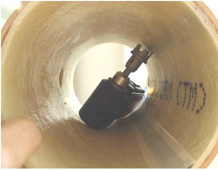 Die geringe erforderliche Probengröße macht es möglich, die Proben direkt aus der Haltung zu entnehmen, d. h. die entnommene Probe ist in jedem Fall repräsentativ für die untersuchte renovierte Haltung. Von den EntsorgungsBetrieben Solingen wurden verschiedene Methoden zur Entnahme von Probestücken aus einer sanierten Haltung untersucht. Als eine für die DSC-Analyse völlig ausreichende Methodik ist die Entnahme mittels einer Akkubohrmaschine mit einer ca. 25 mm großen Hartmetallbohrkrone. Auf diese Weise kann bei sanierten Kanalrohren ab DN 150 gefahrlos von der Revisionsöffnung ein Probestück nach der Aushärtung des Schlauchliners entnommen werden. Die entwickelte Vorgehensweise wird seit Anfang 2006 obligat von den EntsorgungsBetrieben Solingen angewendet.