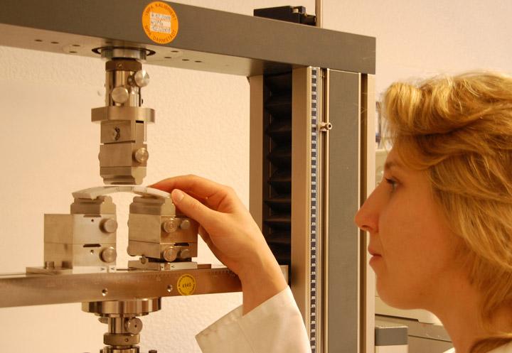 - Prüfmethode: Laststeigerung im Drei-Punkt-Biegeversuch bis zum Versagen; nach DIN EN ISO 178 und DIN EN 13566-4 (Kurzzeit-Biegefestigkeit)