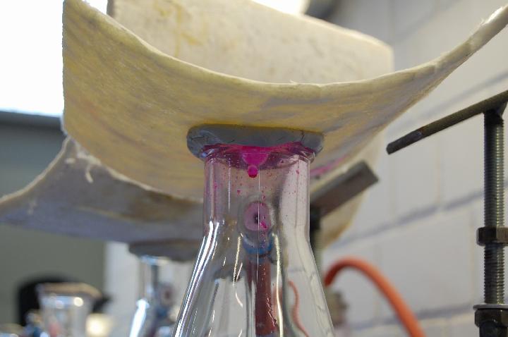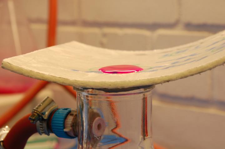 - rot gefärbtes Wasser innen auftragen