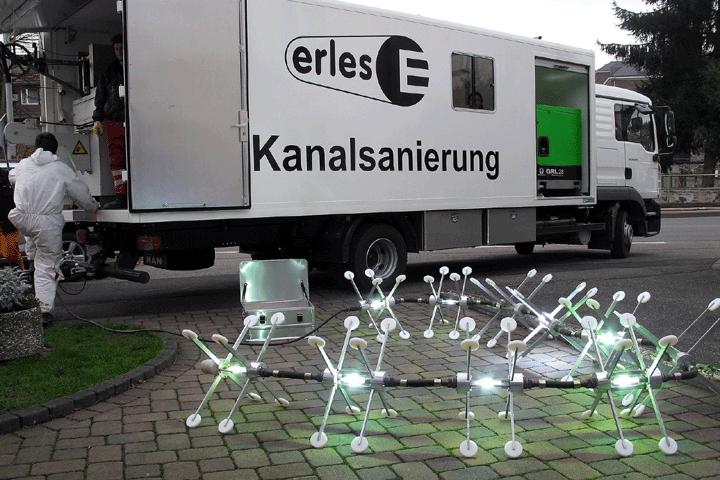 Die Härtung des Liners erfolgt in dieser Nennweite bzw. bei der in Vallendar installierten Wandstärke von 11 Millimetern lichthärtend mit peroxidischer Unterstützung. Das Vallendarer Vorhaben mit der Nennweite DN 1000 war für die zur Installation eingesetzte Lichthärtungssanierungsanlage, die von der Erles-Tochterunternehmung ErwoTec Kanalsanierungstechnik GmbH entwickelt wurde, eine Premiere. Dieses Fahrzeug, mit dem sich alle derzeit verfügbaren lichthärtenden Linersysteme aushärten lassen, wird seit Anfang 2007 vermarktet und wird nach Ansicht des Herstellers in puncto Leistungsfähigkeit und Wirtschaftlichkeit neue Maßstäbe setzen.