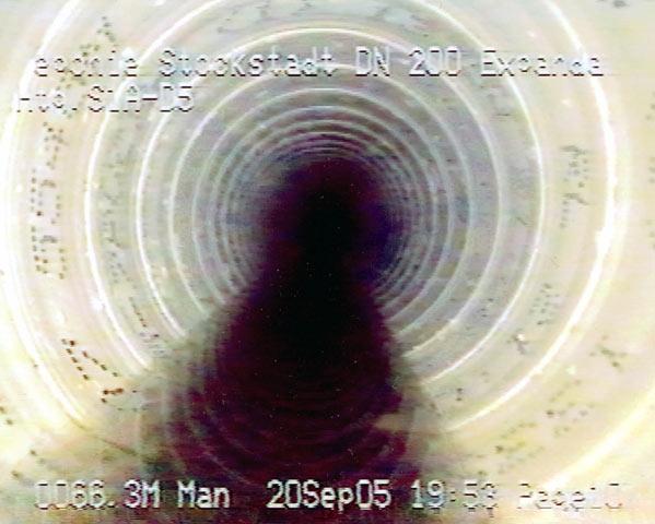 Optische Untersuchungen durch Befahrung mit einer Kanal-TV-Kamera hatten ergeben, dass die zwischen 90 und 166 Meter langen Asbestzementrohre DN 200 zwar keine gravierenden statischen Schäden oder Deformationen aufwiesen, aber dennoch nicht völlig dicht waren. Zudem engten mineralische Inkrustationen den Rohrquerschnitt zunehmend ein. Eine Deponie-Spezialeinheit der KMG Reinigung und Inspektion GmbH entfernte die Verkrustungen mit einer Hochdruck-Rotationsdüse rohrschonend, aber gründlich. Anschließend nahm das Unternehmen, das seit einigen Jahren in Stockstadt mit dem kompletten Wartungsservice nach TA Siedlungsabfall beauftragt ist, eine gründliche TV-Inspektion der Sammlerleitungen vor, auf deren Grundlage KMG ein Sanierungskonzept für die Leitungen entwickelte.