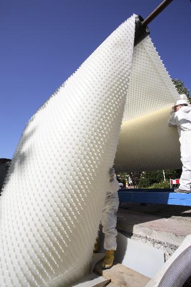 Liner für Kreisprofile im Nennweitenbereich DN250 bis DN2000 bzw. Rohrprofile entsprechenden Umfangs, gehören für die TROLINING GmbH zum Standardprogramm. In den herkömmlichen Größen können Liner bis 200m Länge problemlos hergestellt werden. Bei Großprofilen war die maximal produzierbare Noppenschlauchlänge in der Vergangenheit jedoch limitiert. Größere Sanierungsdistanzen erforderten die Herstellung eines Zwischenschachtes bzw. ein unterirdisches Stoßen zweier Liner.