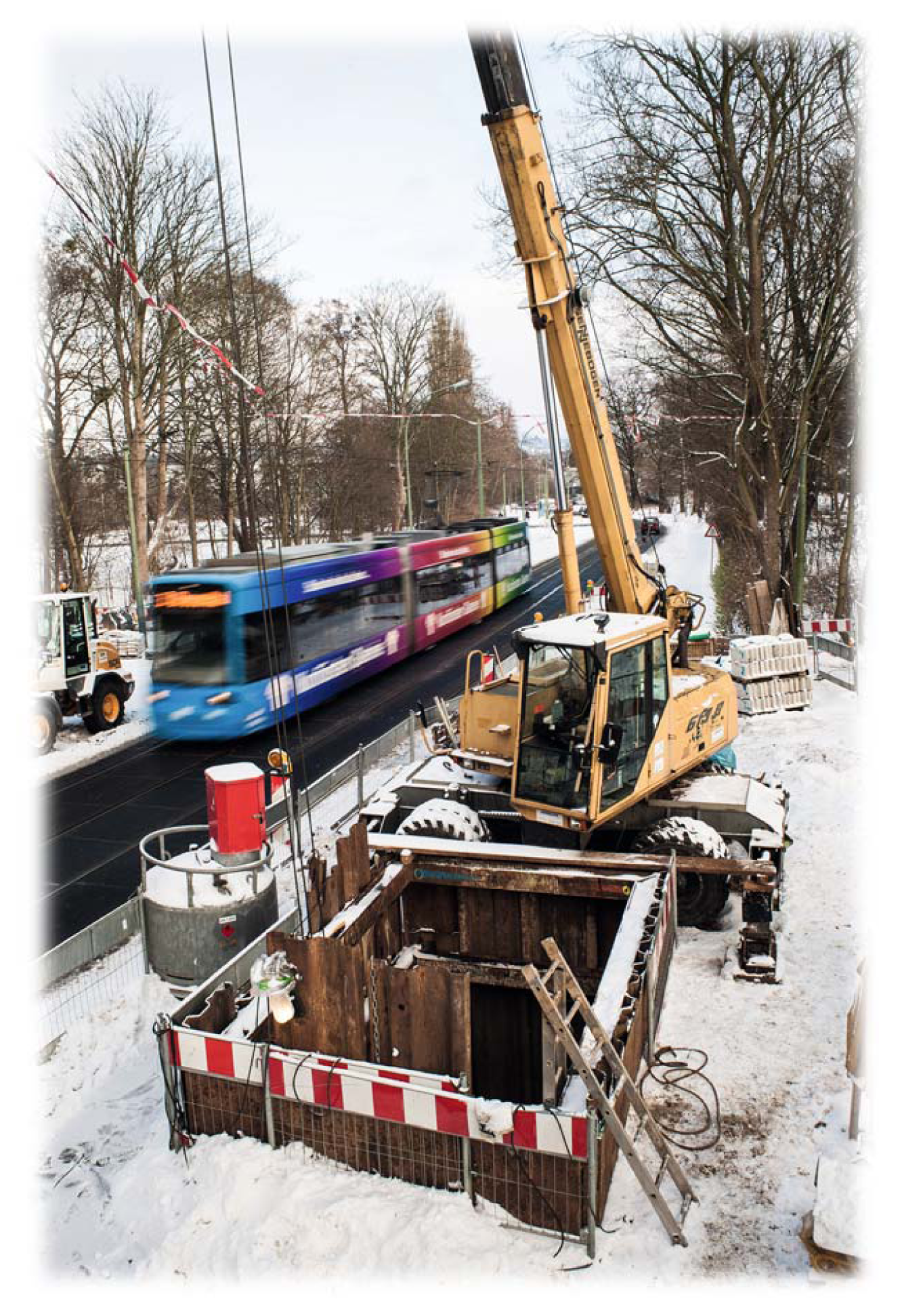 Mit der Tübbingschildvortriebsmaschine von Himmel & Hennig lassen sich kreisrunde, 1,56 m große Stollen aus Stahlbeton zur Neuverlegung und Auswechselung von Ver- und Entsorgungsleitungen herstellen. Die geschlossene und setzungsfreie Bauweise ermöglicht es platzsparend und nahezu unabhängig von bestehender Infrastruktur zu bauen.