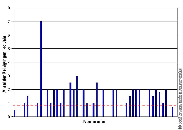 Sowohl die Reinigung von SB als auch von SS wird im Mittel 2-mal jährlich in den beteiligten Kommunen durchgeführt (s. Bild 4 und Bild 5).