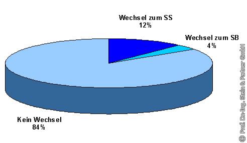 Ein weiterer Grund dafür, dass der SB bei einer Erneuerung der Straßenabläufe etwa doppelt so oft zum Einsatz kommt wie der SS, ist die bestehende Häufigkeitsverteilung der Straßenablauftypen (s. Teil 1 der Veröffentlichung). Die beteiligten Kommunen sehen zumeist keinen Grund bei der Erneuerung schadhafter Straßenabläufe den vorhandenen Straßenablauftyp zu wechseln. Auf die Frage, ob eine Erneuerung der Straßenabläufe genutzt wird, um einen generellen Wechsel des Straßenablauftyps vorzunehmen, machten 48% der Befragten keine Angabe. Während für 84% der antwortenden Kommunen ein genereller Wechsel des Straßenablauftyps nicht in Frage kommt, halten lediglich 12% einen Wechsel vom SB zum SS und 4% einen Wechsel vom SS zum SB für sinnvoll (s. Bild 22). Daraus kann abgeleitet werden, dass bei der Planung von Erneuerungsmaßnahmen Faktoren wie die hydraulische Leistungsfähigkeit oder das Feststoffrückhaltevermögen der unterschiedlichen Straßenablauftypen nur selten eine Rolle spielen. Hier gilt vielmehr das Prinzip, das bestehende System zu bewahren.