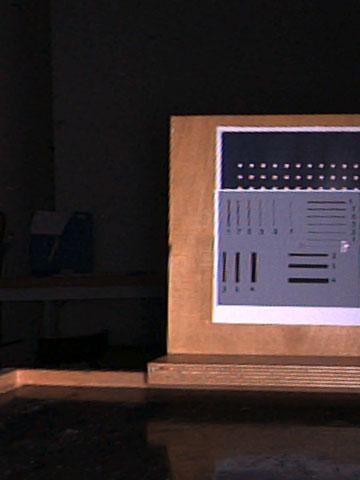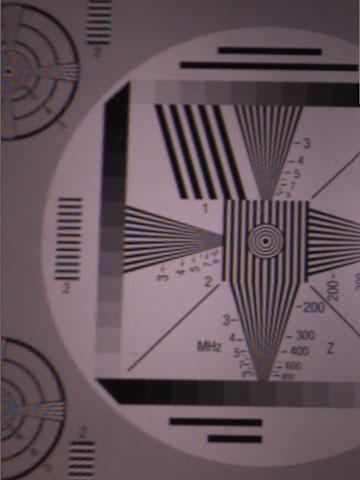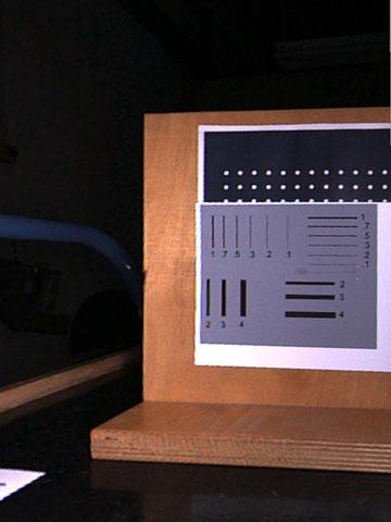 Am 18.10.2005 wurden bei der Fa. IBAK im Beisein eines Vertreters von S&P mit PANORAMO PLUS verschiedene Tests zur Verdeutlichung des Schärfegewinns der perspektivischen Bildaufnahmen bei Verwendung der ColorPlus-Software durchgeführt. Bild 4 zeigt diesbezügliche Testbildaufnahmen ohne (Bild 4a) und mit zugeschalteter ColorPlus-Funktion (Bild 4b) zum Vergleich. Die Erkennbarkeit von Rissen wurde und wird seit Einführung des PANORAMO-Inspektionssystems teilweise kontrovers diskutiert. Die Fa. IBAK gibt als untere Sichtbarkeitsgrenze für Rissbreiten 1/10.000 oder 0,01% des Rohrinnendurchmessers an. Das würde beispielsweise für ein Rohr der Nennweite DN/ID 500 (500 mm) bedeuten, dass Risse bis zu einer Breite von B = 500 mm/10.000 = 0,05 mm erkannt werden könnten. Auch zu diesem Thema wurden am 18.10.2005 Untersuchungen im Rahmen der Überprüfung der Bildqualität durchgeführt. Dabei wurden aus den Entfernungen 10, 25, 40 und 50 cm mit PANORAMO PLUS Aufnahmen von Linien unterschiedlicher Breite gemacht (Simulation der Rohrnennweiten DN/ID 200, 500, 800 und 1000). Hierfür wurde ein vertikal aufgestelltes Holzbrett mit aufgeklebtem Papier mit weißem (100% Kontrast: Schwarz auf Weiß) bzw. grauem Hintergrund (50% Kontrast: Schwarz auf Grau) parallel zum Inspektionssystem (Simulation einer Rohrwand) in Höhe der Linse ausgerichtet. Die Papierseiten waren jeweils mit aufgedruckten schwarzen Linien mit unterschiedlichen Strichdicken (Angabe in mm) sowie unter der 0,1 mm Linie zusätzlich mit einem aufgeklebten Menschenhaar (ca. 0,06 mm) versehen.