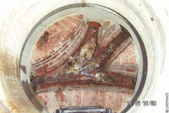 Im Schritt 3 erfolgt die zuvor im Schritt 2 geplante Reinigung. Dabei wird das Fahrzeug so nah wie möglich an den Startschacht heran gefahren. Die Einsatzstelle wird gesichert und die Beanspruchung des Verkehrsraumes auf das Nötigste reduziert. Mit dem Einbringen des Schlauches und der Düse in den Schacht erfolgt die Reinigungsdurchführung. Bei den Reinigungsarbeiten ist zu beachten, dass die o.g. Reinigungsparameter auch auf den baulichen Zustand der jeweiligen Haltung anzupassen sind, um eine Schadensausweitung bei bereits vorgeschädigten Kanälen (z.B. Abrieb, Korrosion, Risse, Scherbenbildung, Rohrbruch) bis hin zum Einsturz durch die Reinigung zu verhindern (Bild 9a). Besondere Gefahrenmomente ergeben sich durch das Schlagen der Reinigungsdüse, das Aufwirbeln von Sediment oder Steinen sowie das Verharren der Reinigungsdüse an einer Stelle (Bild 9b).