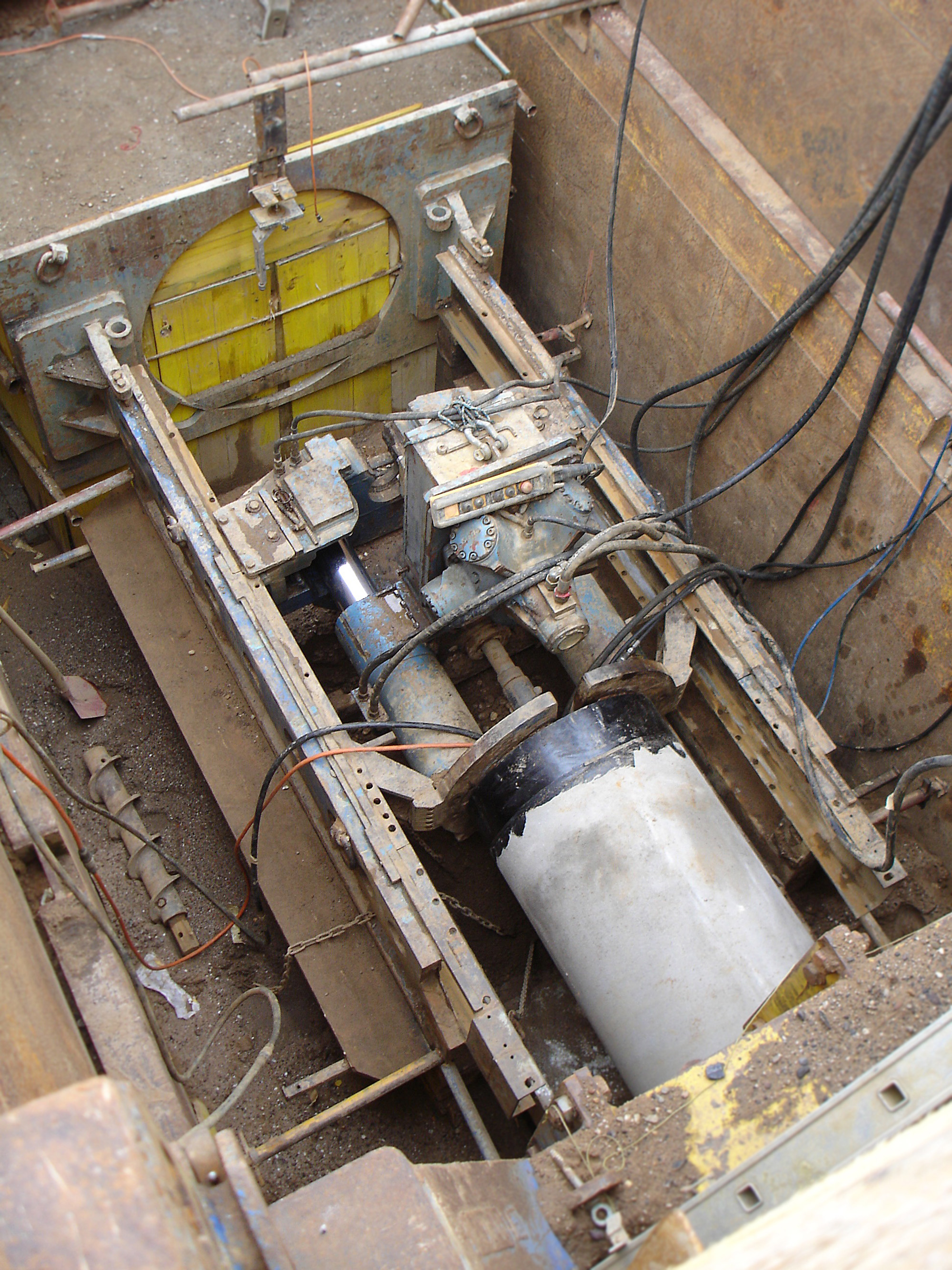 Schon kurz nach Beginn der Arbeiten - dem Vortrieb im Microtunnelingverfahren mit Schneckenförderung - treten unerwartete Schwierigkeiten auf: Während des Rohrvortriebs sackt der Boden unkontrolliert weg. Ein ums andere Mal stören Ausböschungen massiv den Fortgang der Arbeiten. Die Ursache ist ein locker gelagerter, teils rolliger, sandig kiesiger Boden von geringer Standfestigkeit.