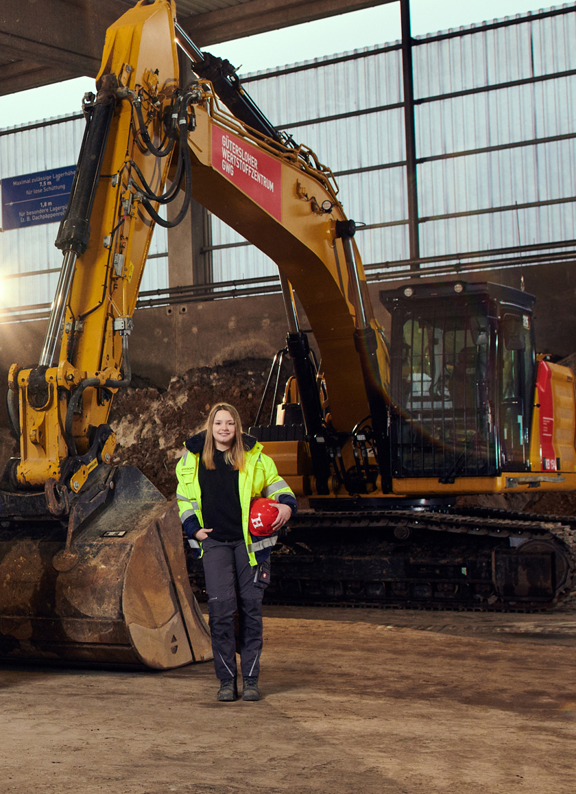 Wir wollen mit Klischees aufräumen, den Fachkräftemangel bekämpfen und vor allem wollen wir Vorbilder sein für andere Frauen. Deshalb starteten wir Ende 2020 mit unserer „Frau am Bau“-Kampagne. Seitdem ist viel passiert. Halb Gütersloh haben wir plakatiert, viele Interviews gegeben, ein branchenweites Netzwerk mit über 25 Firmen etabliert und einen Instagram-Kanal aufgebaut. Im August 2021 konnten wir erstmals vier junge Frauen für eine Ausbildung im gewerblichen Bereich gewinnen – drei angehende Baugeräteführerinnen und eine Tiefbaufacharbeiterin. Innerhalb der Branche ist das eine absolute Seltenheit und ein Ergebnis, was uns sehr stolz macht.