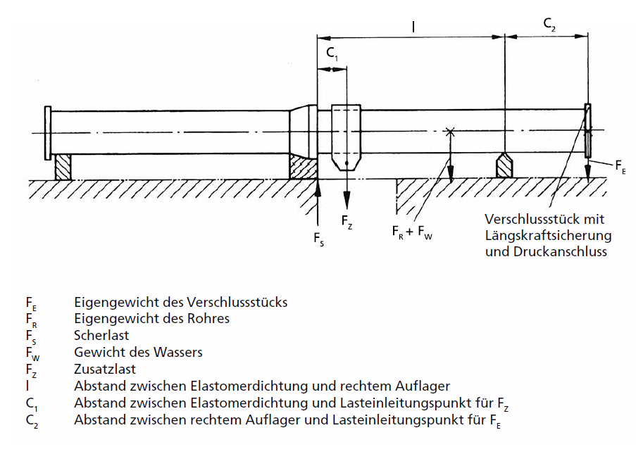 Scherlastprüfung für Rohrverbindungen von Abwasserkanälen und -leitungen mit Ealstomerdichtungen nach [11]