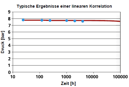 In Bild 12 ist ein typischer Verlauf einer Anpressdruckmessung mit anschließender Extrapolation beispielhaft dargestellt.