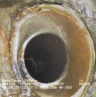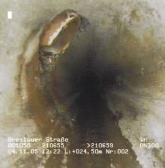 - gleichzeitig sind an gleicher Stelle oder benachbart Schäden am Kanalnetz in Form von Rissen, Scherbenbildung, Muffenausbrüchen und/oder anderen Undichtigkeiten vorhanden.