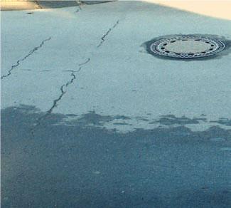 Undichtigkeiten im Schmutz- oder Regenwasserkanal, deren Ursachen z. B. auf Riss- und Scherbenbildung, auf undichte Muffenverbindungen oder Muffenversätze zurückzuführen sind, verursachen häufig die Infiltration von Boden und/oder Verfüllmaterial in das Rohr. Auf diese Weise kommt es zu Setzungen und Sackungen, die sich durch die Verkehrsflächenbefestigung bis zur Fahrbahnoberfläche auswirken können. Sie sind an der Fahrbahnoberfläche in Form von Unebenheiten, Rissbildung oder Flickstellen feststellbar. Das Vorhandensein derartiger Fahrbahnschäden kann jedoch nicht grundsätzlich auf Schäden im Kanalnetz zurückgeführt werden, da auch andere Schadensursachen vorliegen können. Die in den nachfolgenden Abbildungen dargestellten Kanalnetz- und Straßenschäden traten hingegen unmittelbar über- bzw. untereinander befindlich auf, sodass eine Interaktion vermutet werden kann. Derartige Schadenszusammenhänge sind der primären, überwiegend aber der sekundären Interaktion zuzuordnen.