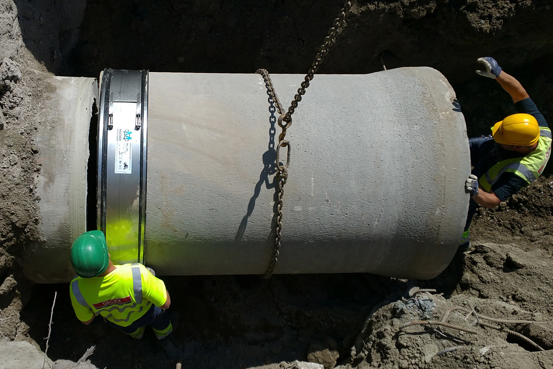 Für die Verbindung der geschnittenen Stahlbetonrohre mit einem Außendurchmesser von 1480 mm entschied sich der Bauherr Aquafin für die Übergangskupplung Canada Titan XL, die bei allen gängigen Rohrmaterialien der drucklosen Entwässerung ab einem Rohraußendurchmesser von 300 mm eingesetzt werden kann. Aquafin ist der zweitgrößte Netzbetreiber in Belgien und lässt die Planungen bei Großprojekten regelmäßig durch das Ingenieurbüro Tractebel durchführen.