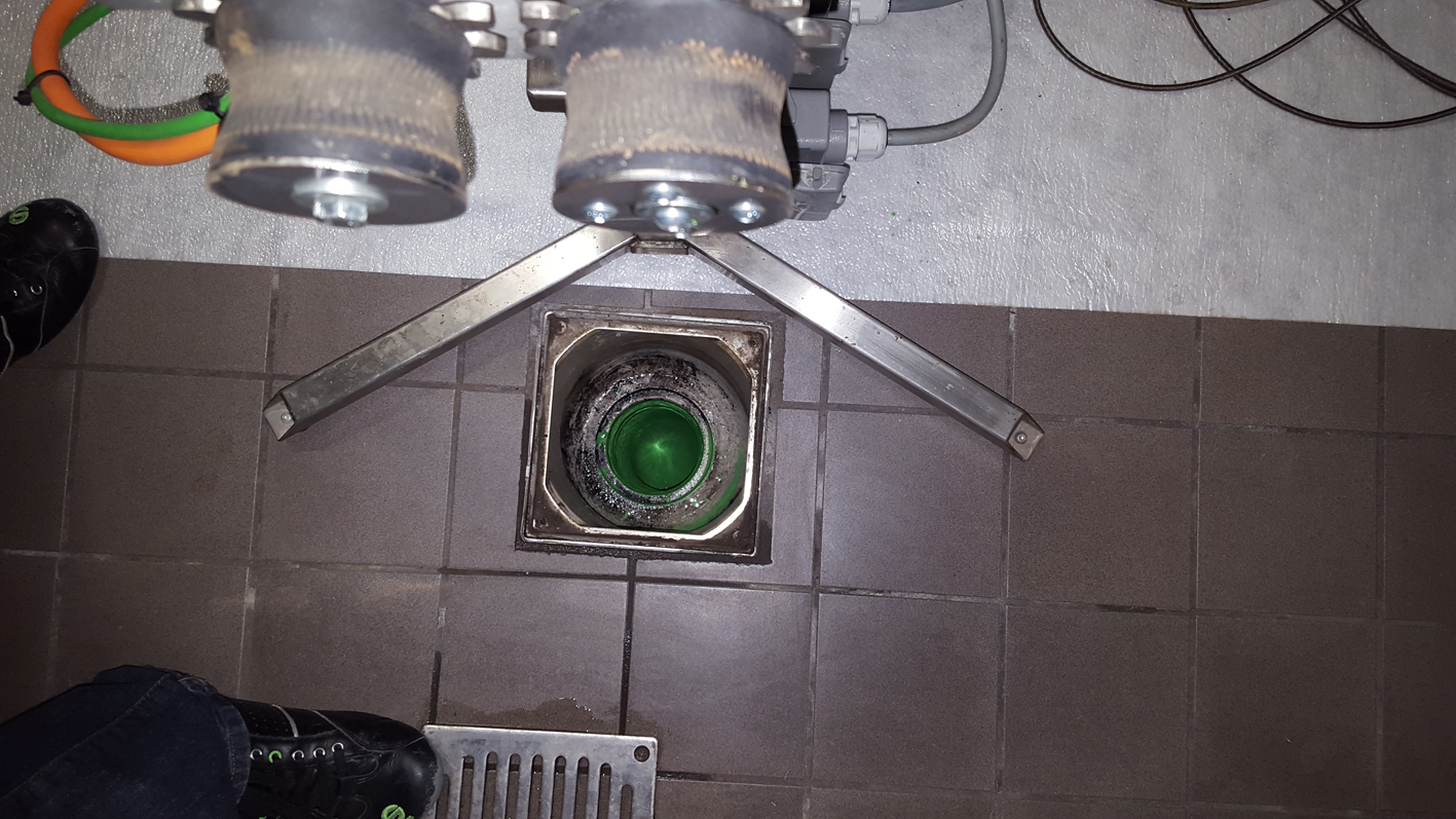 In diesen Außenpfeilern verliefen die Fallleitungen, in denen starke Kalkablagerungen vorlagen. Die Ablagerungen hatten zu einer extremen Reduktion der Leitungsdurchmesser geführt – in Leitungen mit 125mm Nennweite war der Querschnitt auf 40mm, in Leitungen mit 80mm Nennweite auf 30mm reduziert.