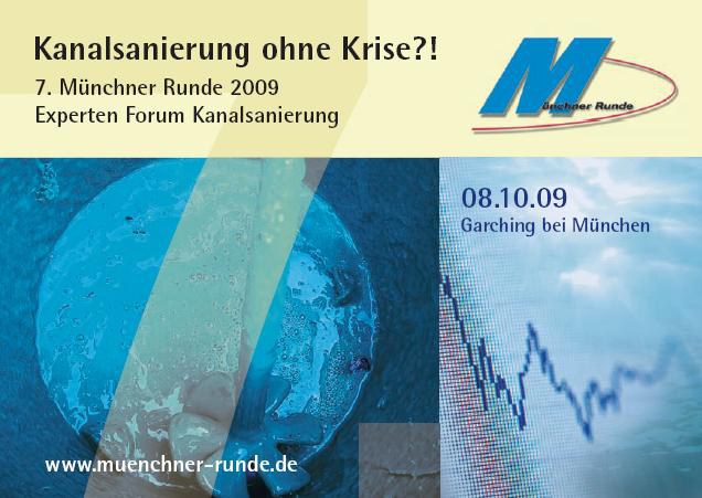 Die 7.Münchner Runde findet statt am Donnerstag, den 8.10.2009 im Bürgerhaus der Stadt Garching bei München. Beginn ist ab 9.00 Uhr. Durchgeführt wird dieses ExpertenForum Kanalsanierung von der Bayerischen BauAkademie. Anmeldungen sind direkt unter www.baybauakad.de oder auch über www.muenchner-runde.de zu erhalten.
