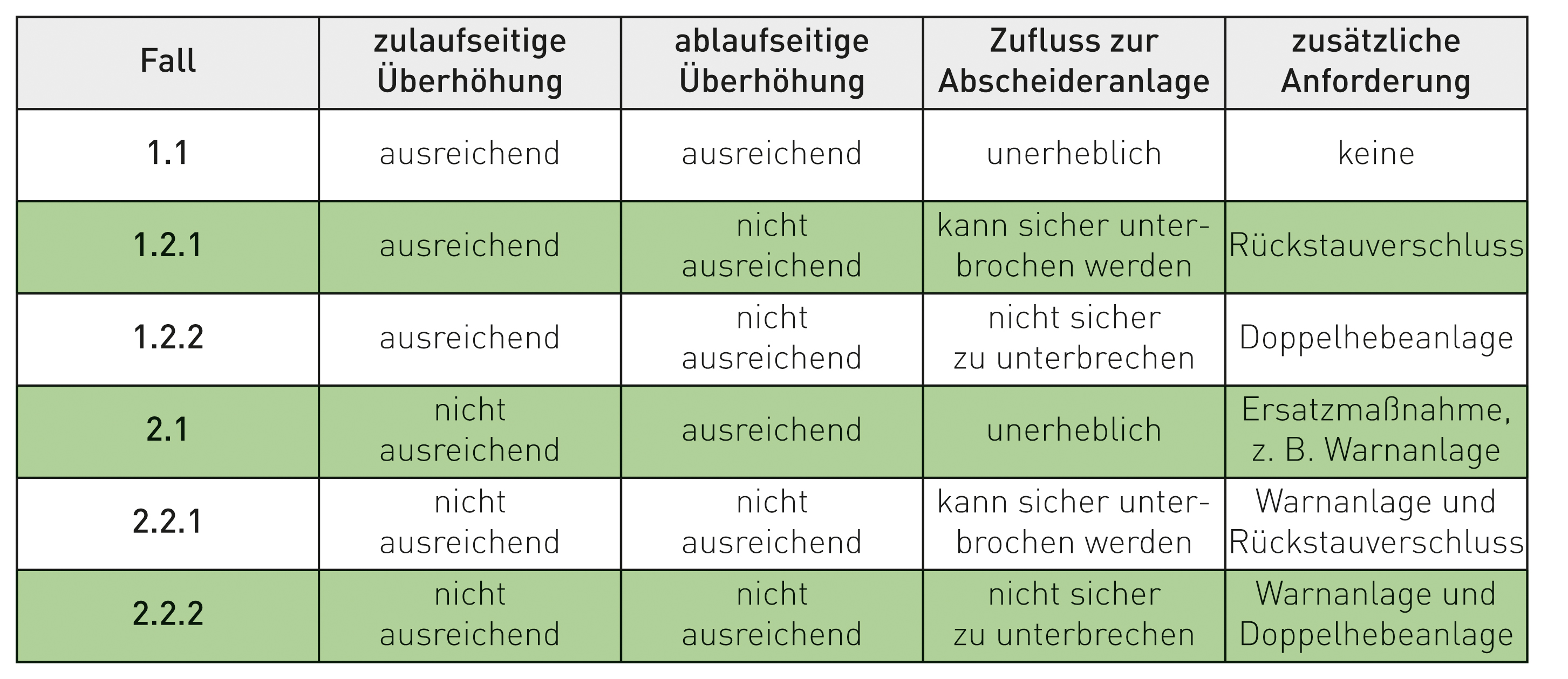 So sind zum Beispiel bei Rückstauverschlüssen nur bestimmte Typen zulässig, Warneinrichtungen müssen sowohl auf die Schichtdicke der Leichtflüssigkeit als auch auf das Flüssigkeitsniveau im Abscheider reagieren und bei Hebeanlagen ist der Ex-Schutz sicherzustellen.