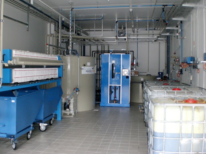 Die EnviroChemie Abwasserbehandlungsanlage reinigt die Abwässer auf die geforderten Grenzwerte, indem sie vorhandene Schwebstoffe, Emulsionen und Schwermetalle sicher aus dem im Abwasser entfernt. Die Abwasserreinigungsanlage besteht aus einer physikalischen Vorreinigung und einer weitergehenden Abwasserbehandlung.