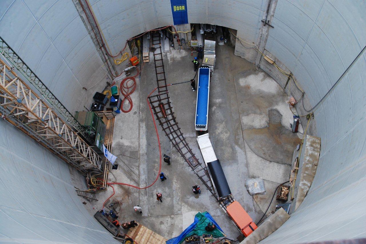 Dieses Verfahren, das man nur aus dem Verkehrstunnelbau kennt, wurde aufgrund der großen Tiefenlage in Verbindung mit Haltungslängen von bis zu 1.200 m und den ansonsten damit verbundenen Reibungskräften gewählt.