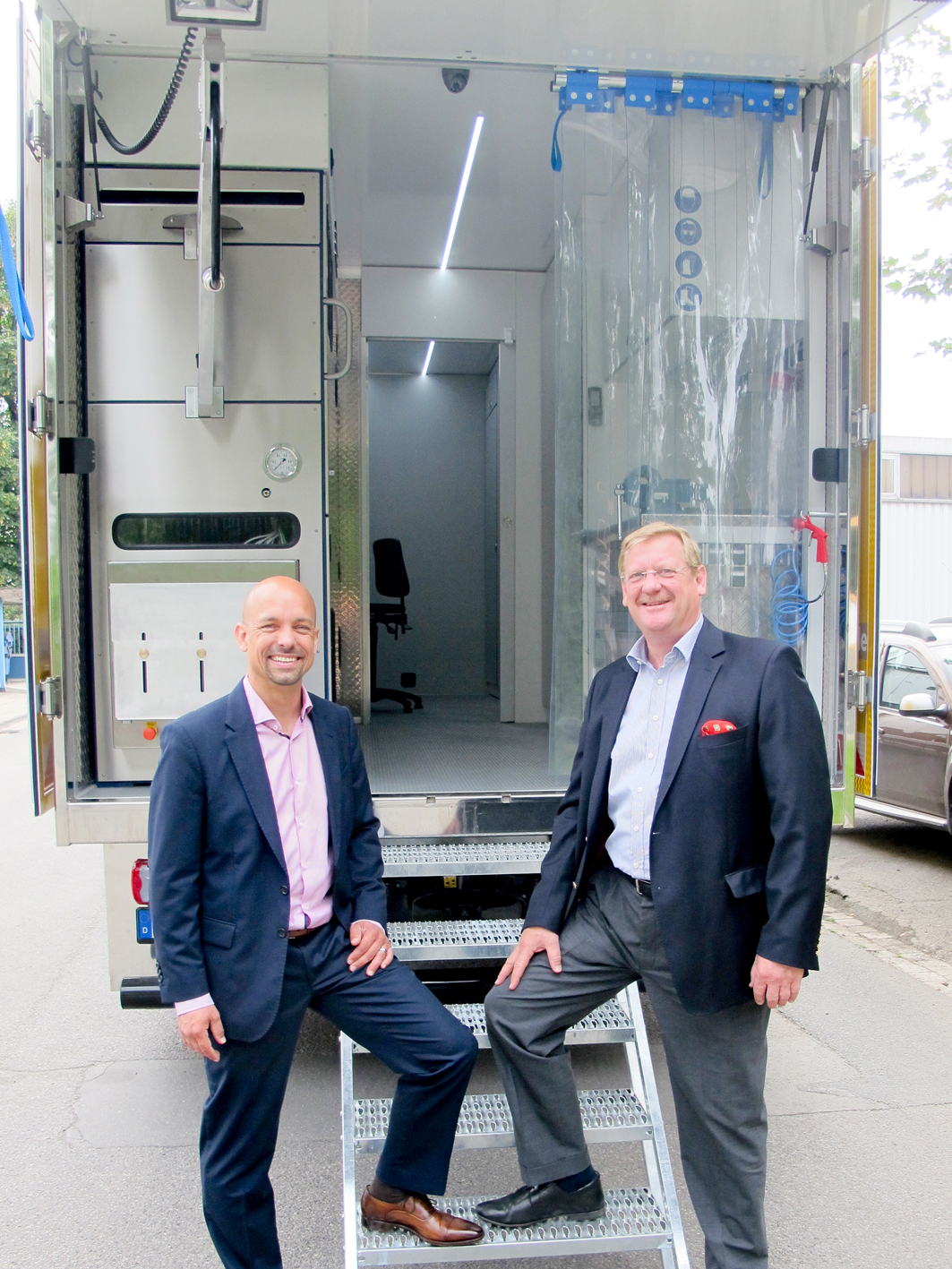 Arkil Inpipe GmbH wird zukünftig verstärkt große Nennweiten einbauen. Daher wurde die Anlage gemeinsam mit dem Hersteller entsprechend individuell konzipiert. Der Kofferaufbau beherbergt einen übersichtlichen Arbeitsplatz mit großem Bedienpult für den Operateur, einen geräumigen Aufenthaltsraum für die Kolonne und ein großzügiger Arbeitsbereich für das Handling der UV-Strahler. Die Anlage ist mit einem leistungsstarken Generator, Klimageräten und einem luftgewaltigen Schrauben‐Verdichter ausgestattet. Die klimatisierte Kabeltrommel mit 300 Metern Aushärtekabel ermöglicht die Sanierung von sehr langen Kanalabschnitten in einem Arbeitsgang.