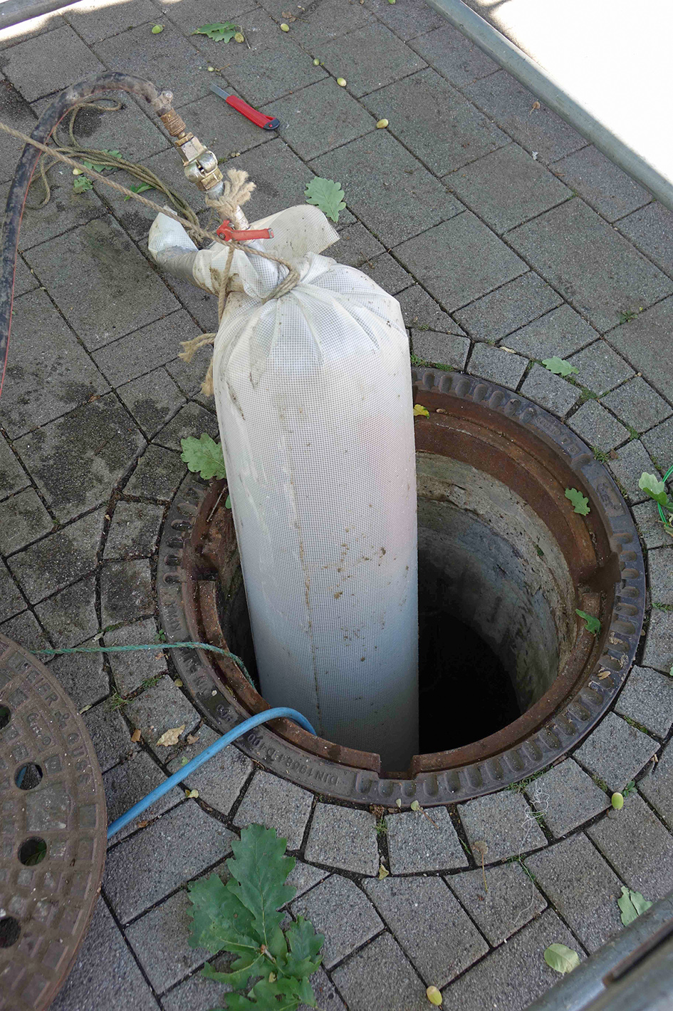 „Trotz dieses bautechnischen Hintergrunds haben wir uns für eine grabenlose Sanierung mit einem Schlauchliner entschieden. Ausschlaggebend waren wirtschaftliche Aspekte und die möglichst geringe Belästigung der Anwohner und Geschäfte in der angrenzenden Fußgängerzone “, so David weiter. Eine Entscheidung, die sich bezahlt gemacht hat: Geschützt durch einen gewebeverstärkten PVC-Preliner konnte der vorgesehene Nadelfilzschlauch ohne Probleme in nur 30 Minuten in die Haltung inversiert und danach ausgehärtet werden.