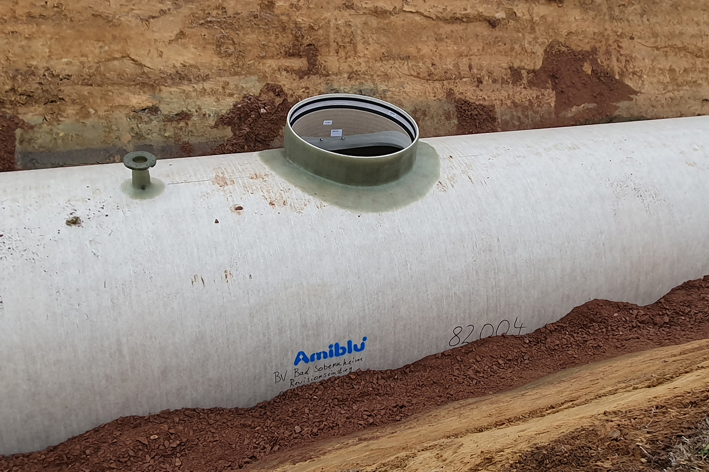 Daher ist ein weiterer Bestandteil der Baumaßnahmen die Errichtung eines 248 m langen und rund 1.100 m3 fassenden Regenrückhaltekanals, der aus GFK-Rohren DN 2400 der Amiblu Germany GmbH hergestellt wurde und als zusätzlicher Betriebswasserspeicher dient.