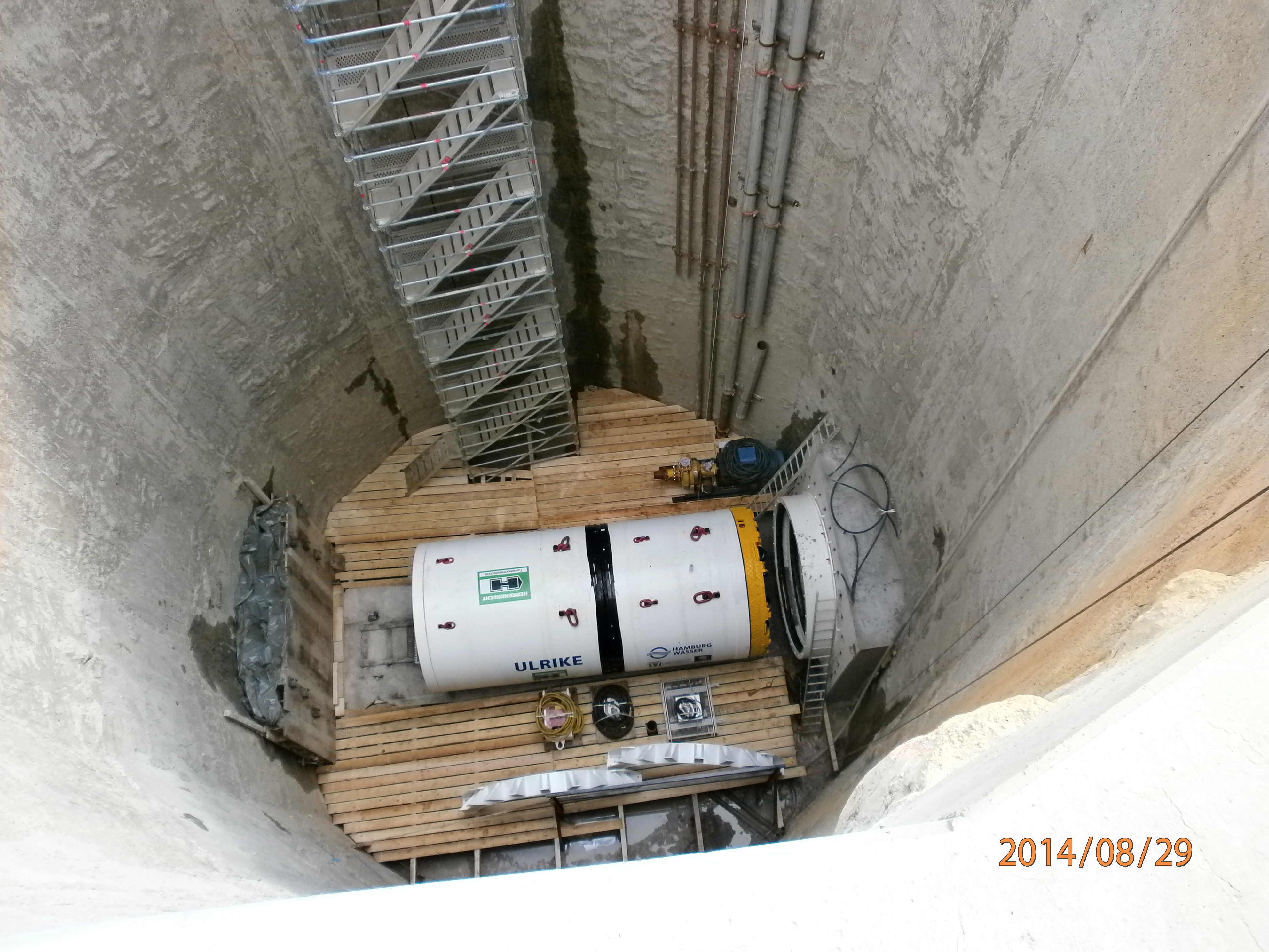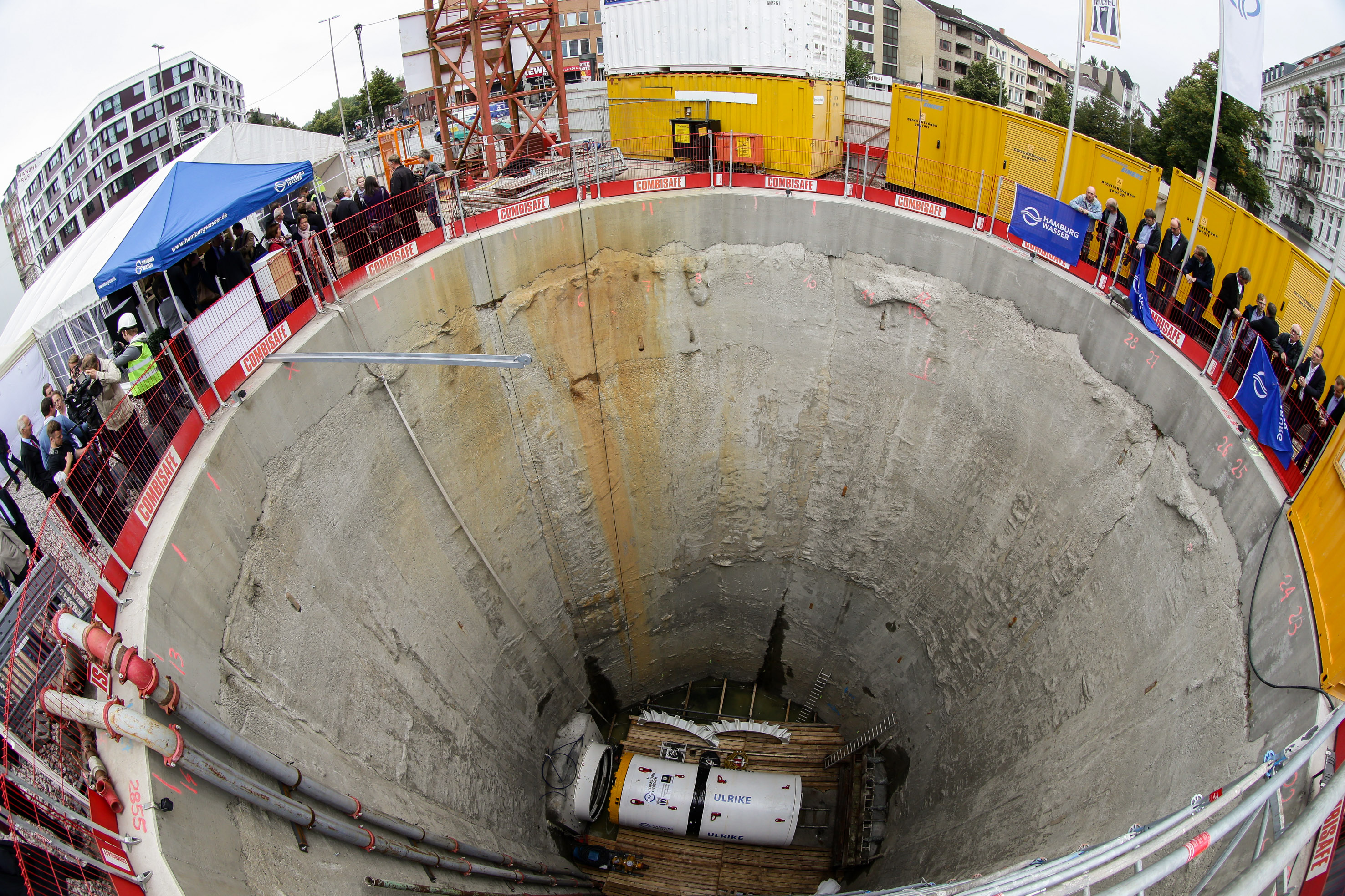 Eine willkommene Atempause bot die Schildtaufe am 1. September 2014 – eine aus dem Bergbau übernommene Tradition. An diesem Tag legten die Arge-Arbeiter ihr Werkzeug beiseite, um eine eindrucksvolle Dame zu begrüßen: die achtzig Tonnen schwere Vortriebsmaschine Ulrike, die sich bis Ende des Jahres durch den Hamburger Boden graben wird, um den ersten Abschnitt von 800 Metern fertig zu stellen. „Glückauf!“ oder besser: „Glücktief!“ wünscht der Baureport*. 2015 werden wir erneut von dieser interessanten und herausfordernden Baustelle berichten.