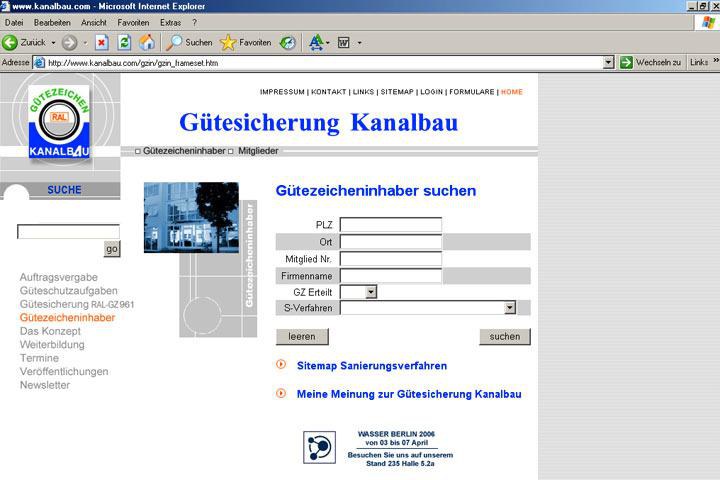 Firmen, die ein RAL-Gütezeichen Kanalbau beantragt haben oder bereits ein RAL-Gütezeichen besitzen, melden ihre Maßnahmen vor Baubeginn online an die Geschäftsstelle der Gütegemeinschaft. Auftraggeber - sofern sie Mitglied der RAL-Gütegemeinschaft Kanalbau sind - können unter www.kanalbau.com in einem Passwort geschützten Bereich unter dem Stichwort Baustellenmeldungen Informationen zu den jeweils sie betreffenden Baumaßnahmen abrufen. Zugleich ist der Prüfingenieur vor Ort über die in seinem Zuständigkeitsbereich stattfindenden Aktivitäten informiert. Bei Firmenbesuchen werden die Angaben zum Personal und zum Gerät, wie sie bei der Erstprüfung dokumentiert wurden, überprüft. Merkmal qualifizierter Fachunternehmen ist die inner- und außerbetriebliche Weiterbildung. Auch diese Anforderung wird beim Firmenbesuch geprüft. Schließlich wird die Dokumentation der Eigenüberwachung aller seit der Erst- bzw. letzten Fremdüberwachung abgewickelten Maßnahmen, stichprobenartig auf Vollständigkeit und Plausibilität überprüft.