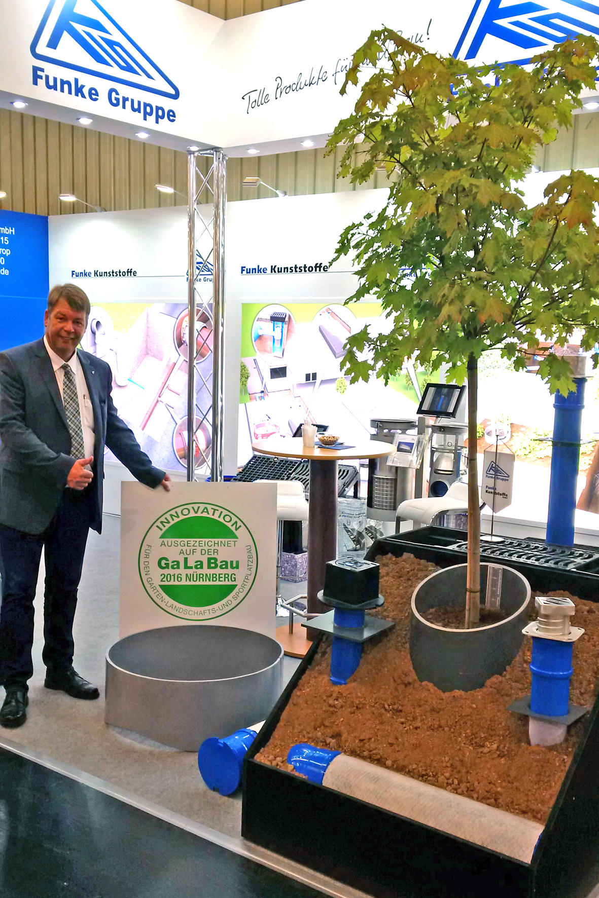 Im Rahmen der 22. Internationalen Fachmesse GaLaBau, die zwischen dem 14. und 17. September in Nürnberg stattgefunden hat, ist die von der Funke Kunststoffe GmbH vorgestellte Messeneuheit Funke-Gießring vom Bundesverband Garten-, Landschafts- und Sportplatzbau e. V. (BGL) mit einer Innovationsmedaille ausgezeichnet worden.
