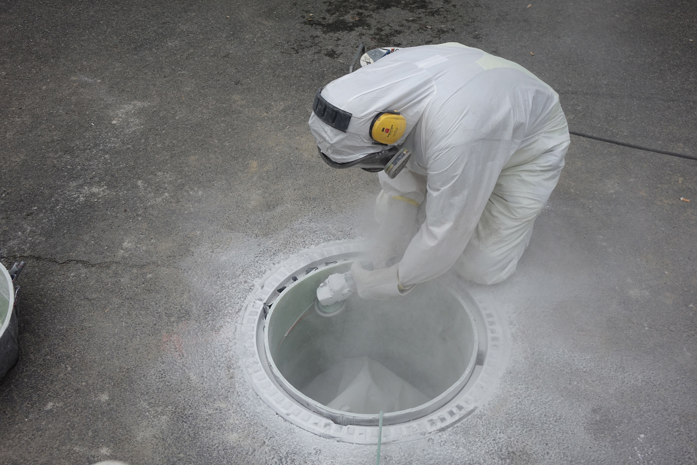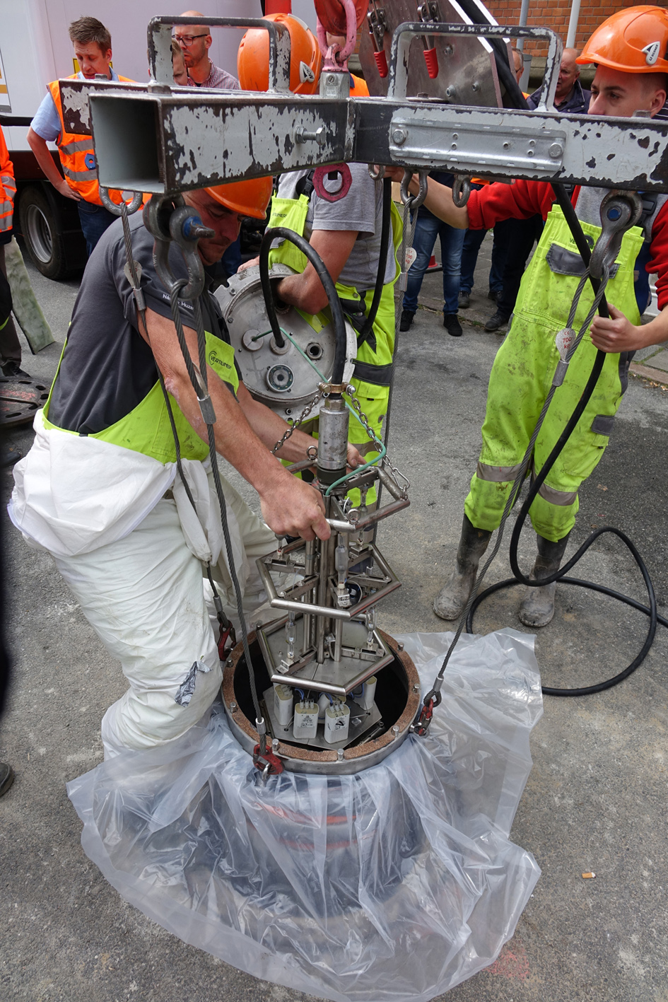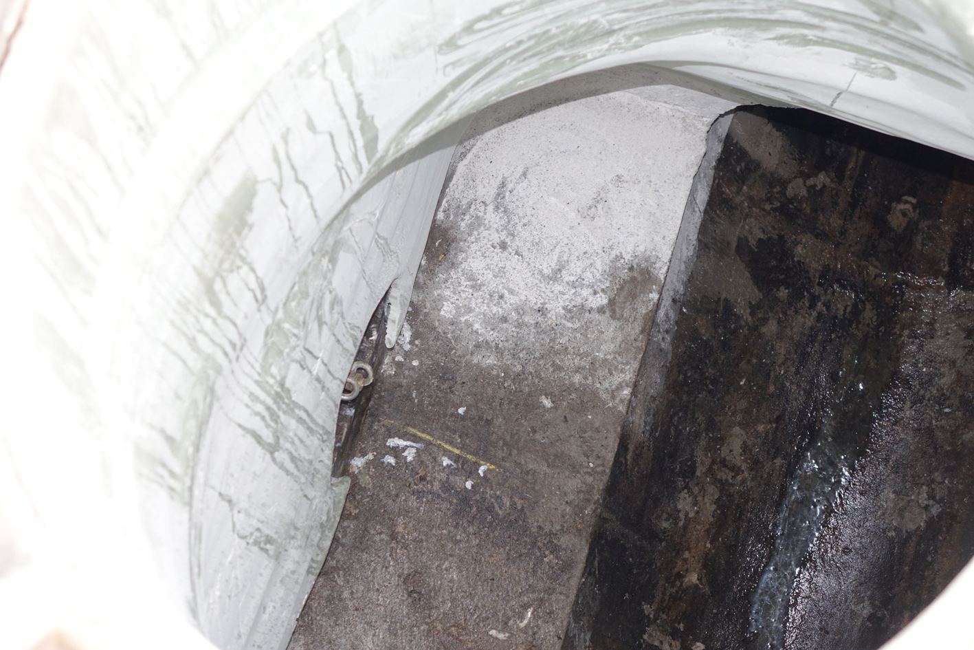 Auch vor Ort kann das Verfahren punkten: Nach einer Grobreinigung, dem Ausbau der Steigeisen und der möglicherweise erforderlichen Reprofilierung von gröberen Schadstellen kann der Vertiliner® in den Schacht eingebracht und ausgerichtet werden. Danach erfolgt die Beaufschlagung mit Druckluft und die anschließende Aushärtung mittels UV-Technologie. Nach dem Aushärtevorgang werden die Enden des Schlauchliners bündig abgeschnitten, vorhandene Zuläufe und Anbindungen wiederhergestellt und Übergangsbereiche laminiert.