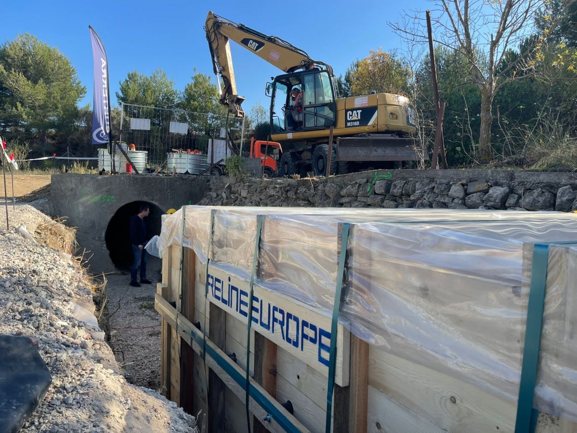 Besonders entspannt ist die Anreise dazu natürlich noch ohne Stau und große Umleitungen. Hierfür sorgte genau auf dieser Autobahn 9 bei Narbonne in der Ferienzeit Ende Oktober der langjährige Kunde von RELINEEUROPE GmbH: Subterra. Ein über 50 Jahre altes Rohr aus AMCO war korridiert und musste in kürzester Zeit saniert werden. Subterra erhielt den Zuschlag für das außergewöhnliche Projekt zur grabenlosen Sanierung des 113 m langen Abschnitts in DN 1600 mittels GFK-Liner und setzte dabei den Alphaliner1800 mit einer Wandstärke von 16,3 mm und einem Gesamtgewicht von 18,8 t ein.