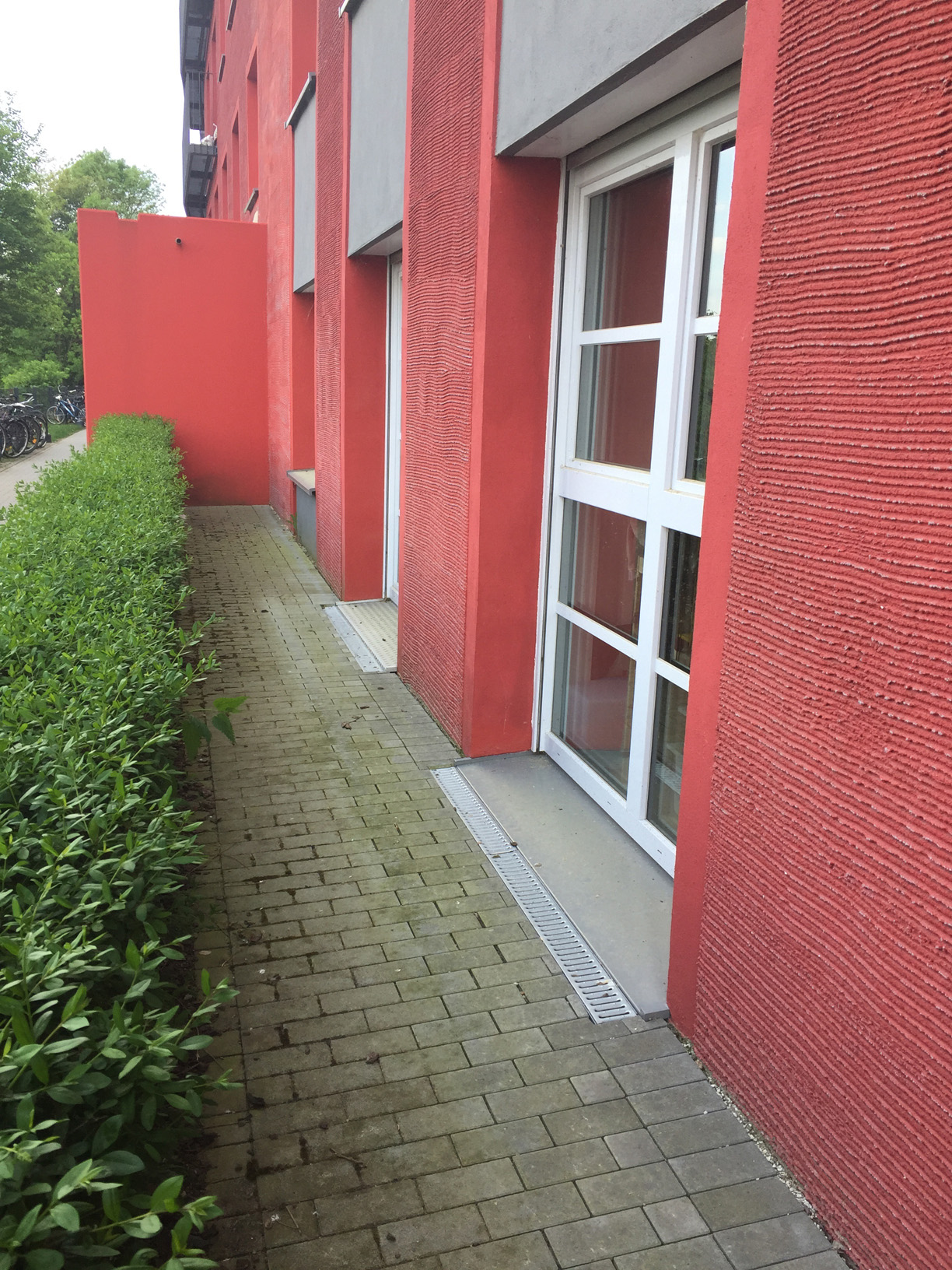 An den Hauseingängen ließen sich in Projekt Hafeninsel Recyfix Pro Rinnen als besonders praktikabel einbauen. Hier kam es auf Korrosionsfreiheit, ein durchgängig gleiches Aussehen der Abdeckungen und auf die einfache Verarbeitung an. Operativer Pluspunkt war, dass Recyfix Pro Rinnen sich besonders leicht verlegen lassen. Ohne Hebezeuge können die Kunststoffrinnen von Hand eingebaut werden.